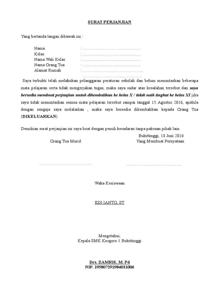 SURAT-PERNYATAAN kenaikan bersyarat.doc from imgv2-1-f.scribdassets.com Contoh surat perjanjian franchise thai tea; Surat perjanjian naik kelas bersyarat. Surat ini diberikan oleh sekolah sebagai jaminan bahwa peserta didik tersebut naik kelas tetapi dengan syarat syarat tertentu. Contoh surat perjanjian kerjasama berikut ini adalah sekumpulan referensi lengkap yang bisa dipakai untuk membuat surat perjanjian kerjasama untuk bisnis. Documents similar to surat perjanjian kenaikan kelas bersyarat (naik percobaan).docx kecelakaan lalu lintas dapat terjadi karena perbuatan melawan hukum yang dilakukan oleh pengemudi baik secara langsung maupun tidak langsung. Dalam mengajukan kerjasama anda perlu membuat surat perjanjian hitam di atas putih. Dengan ini menyatakan bahwa setelah naik kelas. Yang bertandatangan di bawahini :